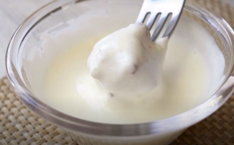 В греческий йогурт пропускаем через пресс зубчики чеснока, смешиваем.