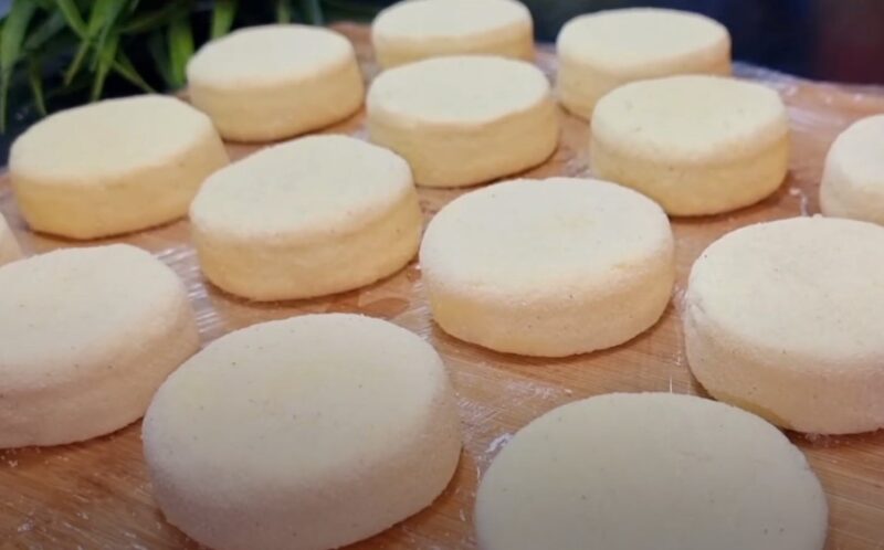 Шайбы можно сформировать при помощи круглой формы или ножа. Прижимаем поверхность ножа к бортикам не сформированной шайбы.