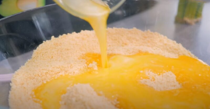 Измельчаем в блендере печенье Мария до мелкой крошки. Растапливаем 110 грамм сливочного масла, выливаем в крошку, перемешиваем компоненты.