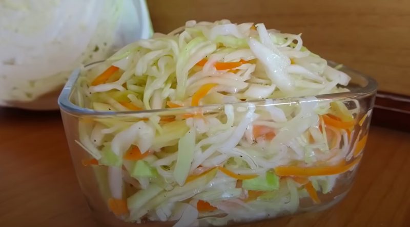 Выжидаем приготовления 1 час. После чего маринованная капуста готова. Выходит очень вкусно и аппетитно.