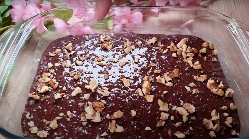 Сливочным маслом смазываем форму для выпекания, выливаем туда какао массу.