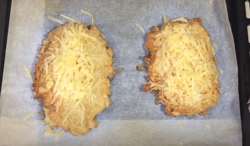 Запекаем стейки в духовке при 180 градусах 25-30 минут. За 5 минут до готовности посыпаем стейки натертым сыром.