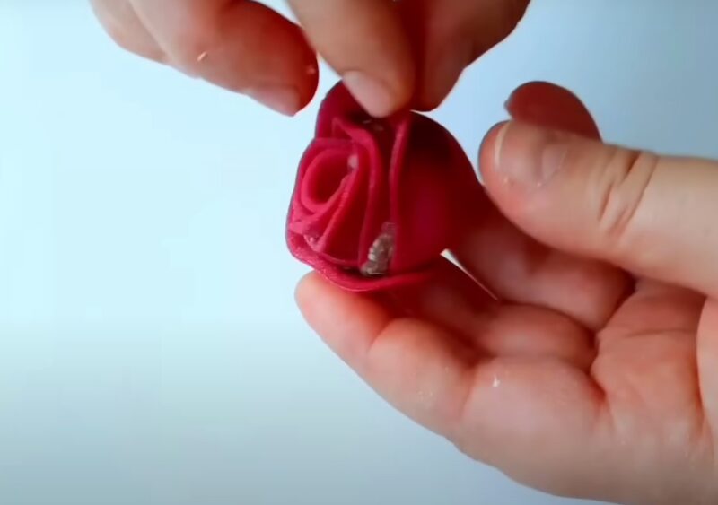Заворачиваем фарш в один из краев теста и скручиваем кружки, превращая конструкцию в розочку.