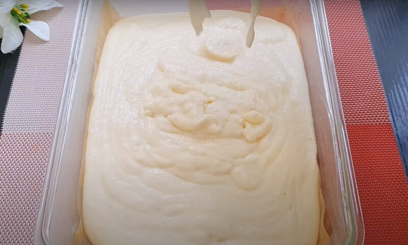 Форму для выпекания смазываем сливочным маслом, вливаем получившуюся массу.