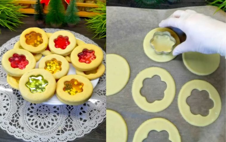 После этого раскатайте его и вырежьте небольшие кольца, диаметром 7-8 сантиметров. Внутри сделайте отверстие, диаметром 5-6 сантиметров. Выпекайте печенье в духовке 5 минут при температуре 180 градусов. Далее положите внутрь по 1 или 2 леденца и выпекайте еще в течение 5-8 минут, но смотрите, чтобы конфеты не начали закипать, иначе будут некрасивые пузырьки, когда леденцы застынут.