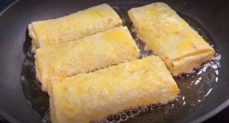 В смесь обмакиваем пирожок и отправляем жариться на сковородке с маслом. Готовим на среднем огне с двух сторон.