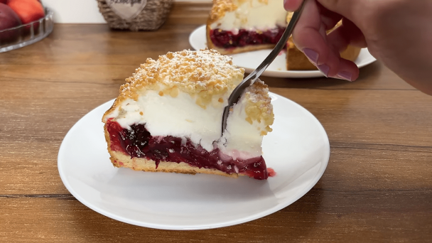 Вишневый пирог со сливочным суфле: этот торт действительно тает во рту, а главное это просто и очень быстро.
